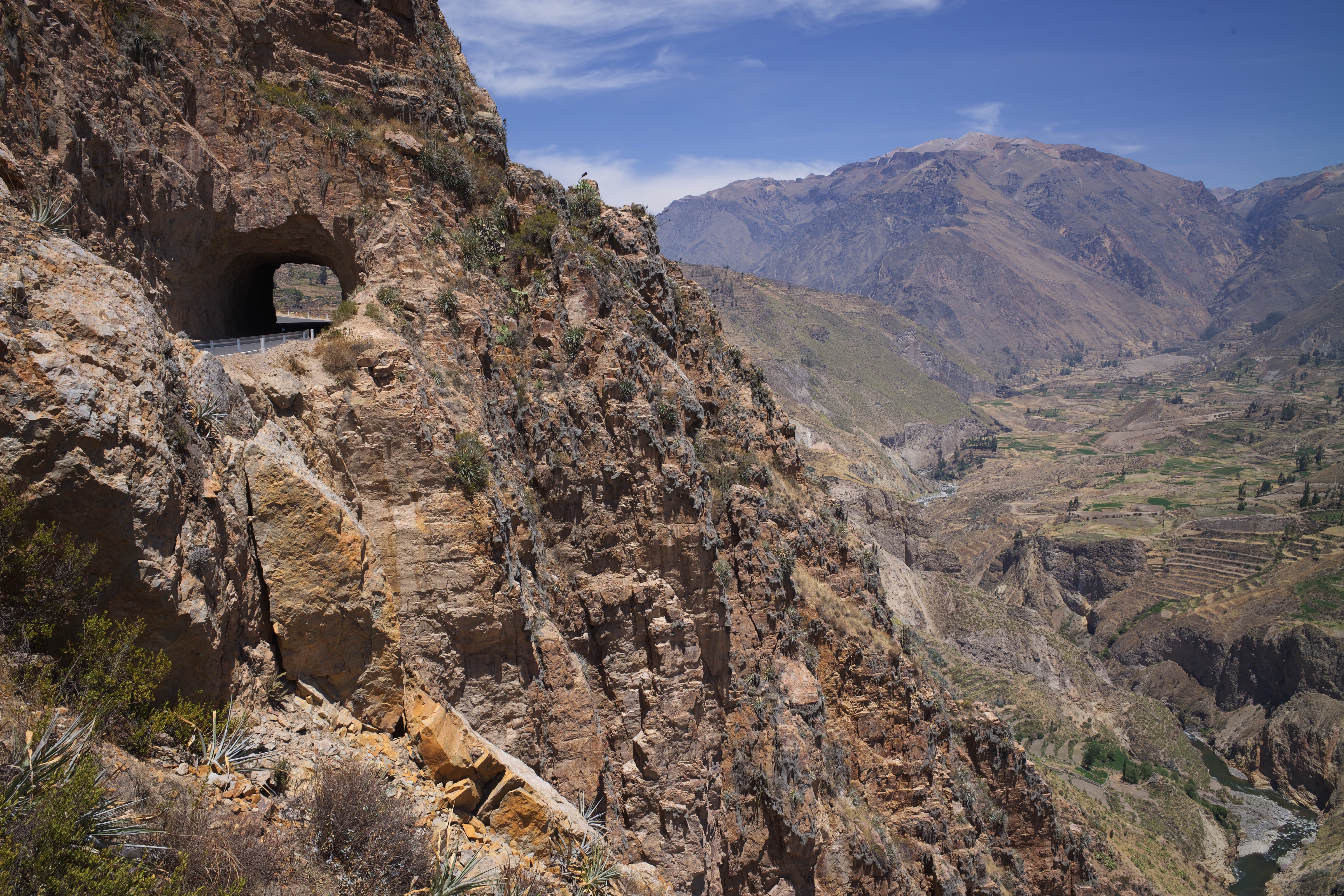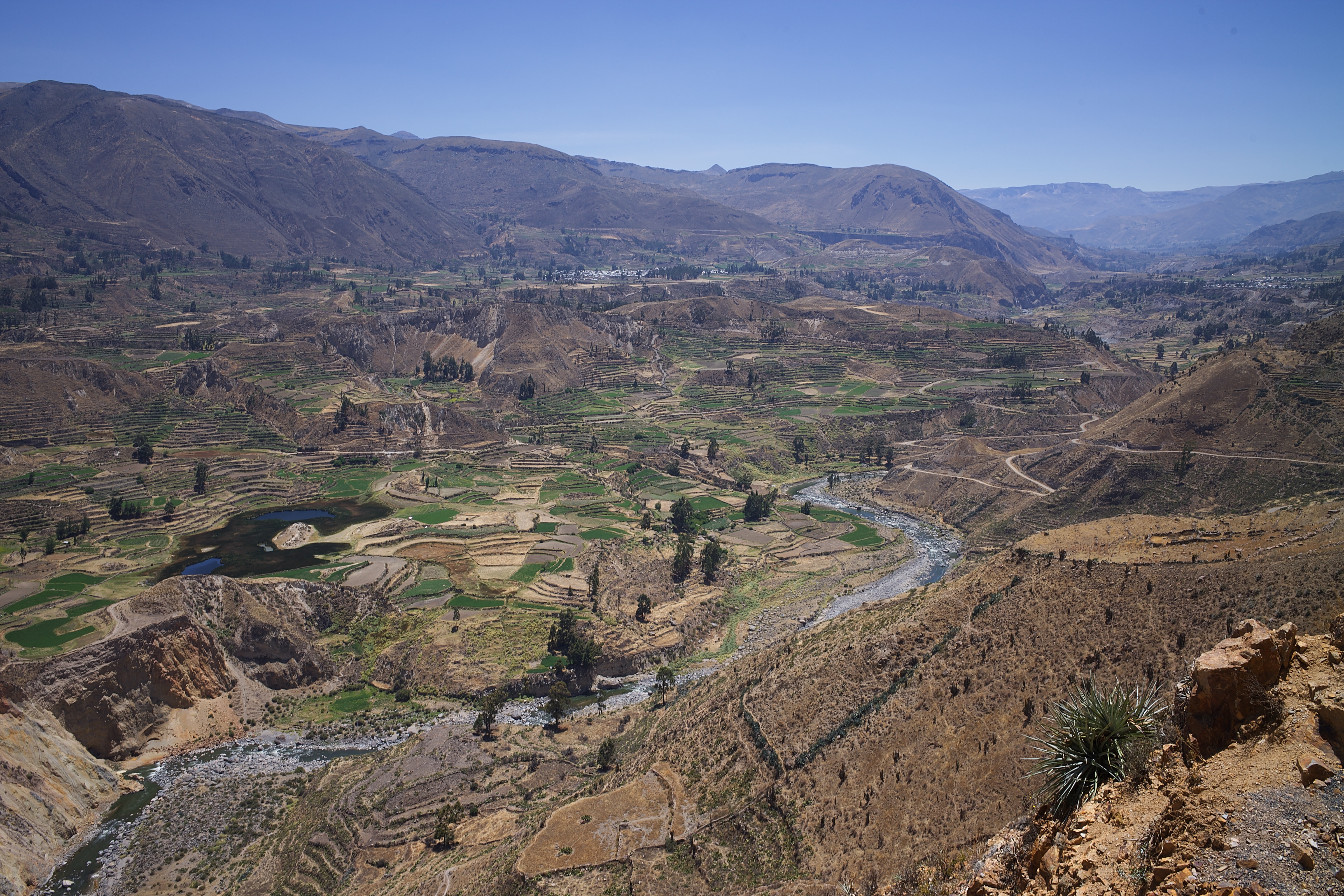 On the next day the tour started around 6.30 am. To our astonishment, we didn`t drive directly to the viewpoint to see the famous Andean Condors, which only fly very early in the morning, but stopped for over half an hour in a very small town, were there was nothing else to see than sales stands and folclore dance. Regardless of the unneccassary stops, we arrived just in time at the `Cruz del Condor`, which is a viewpoint from where the Canyon is around 1,200 meters deep. Here we were able to see four Condors flying, whereby two of them flew very close by. It was stunning to see these majestic birds from so close, being able to see their immense wingspan of up to 3.2 meters and to observe how they flew effortless ever higher using only upwinds. We spend around 1 1/2 hours at this viewpoint hoping that the Condors would show themselves again. But as it turned out, we were only lucky in the first 15 minutes.