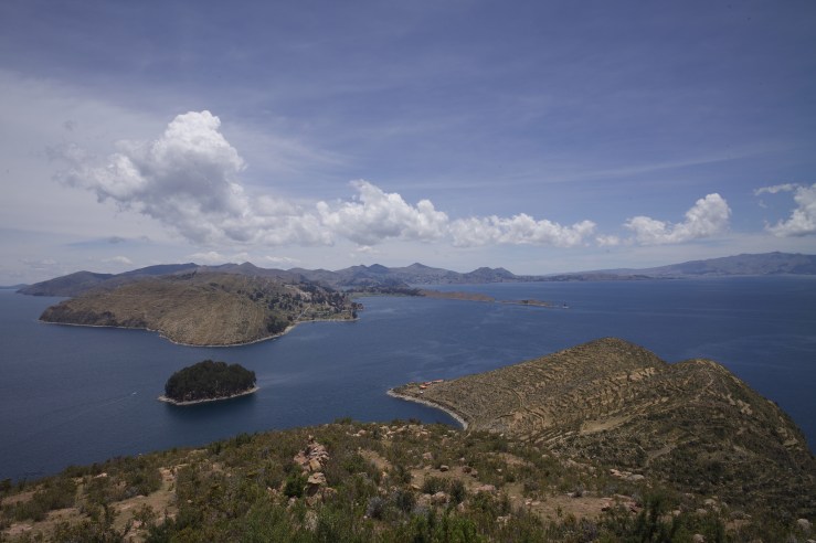 The next day we started very early. We planned to hike around the island but were stopped right after we crossed the border of the village. Apparently there is a conflict between the people in the South and the North and it is not possible for tourists to cross the island. This blockade lasts already for nine months, which is incredible given the island is one of the main tourist spots in Bolivia. Frustrated because almost all the important inca ruins are on the Northern side, we returned back to the village. Other tourists made the same experience and we took some time to discuss what we should do. As the Southern part of the island was quite small, we decided to cut our stay on the island and travel to La Paz on the same day. After arranging the trip and booking a hotel in La Paz at one of the few restaurants with WIFI, we packed quickly and left the hostel. In our remaining time we did a quick hike to two viewpoints („Mirador“ in Spanish) and went down the 200 meters in altitude to the port to catch our boat.