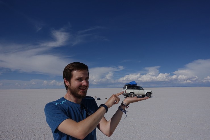We stopped for lunch in an hotel made out of salt and afterwards had the opportunity to take some of the famous and funny pictures with special effects, which was a lot of fun. One of the main attractions was the Isla Incawasi, which is a small island in the middle of the salt flat. It has a unique and isolated ecosystem with cacti up to 10 meters high. After watching the sunset in the salt desert we headed to our hotel which was also entirely made out of salt. First I was very exited to spend the night there, but afterwards I realised, that salt can be as annoying as sand. We had it everywhere and our bags were full of salt.