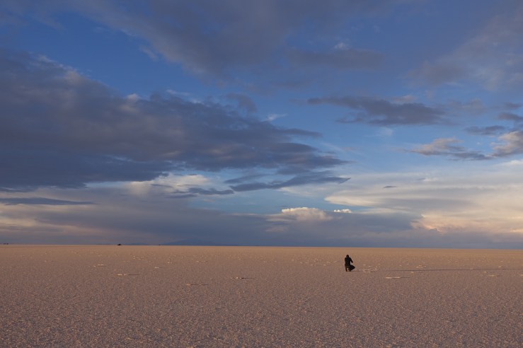 After two redundant stops we drove into the Salar the Uyuni, which is the largest salt flat (12106 sq km) in the world. It is an out of this world place, just flat white ground, blue sky and hardly nothing else. It seems to stretch into infinty and distances do not seem to exist. Streets do also not exist, but travel roads, on which we speeded along. This holded true for the whole journey, and we were very happy that we had the 4×4 jeep, which was able to go through even the wildest countryside.