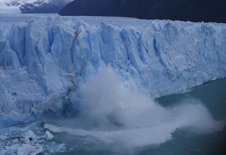 The next day we went to the glacier Pepito Moreno, named after a famous scientist and explorer who mapped a lot of Argentine Patagonia but never reached the glacier which is named after him. This glacier is one of a few in the world which are not decreasing but in a steady state. It is also very popular because visitors are able to get very close to it. We stayed for many hours, walking on footpaths on the hill across from the glacier and were impressed by the wall of ice, which is 50-70 meters high. Falling icerocks are the spectacle here and people like us spend hours sitting and waiting to see gigantic ice rocks cracking from the glacier and falling into the lake. The noise and the splash is unique and well worth the wait.
