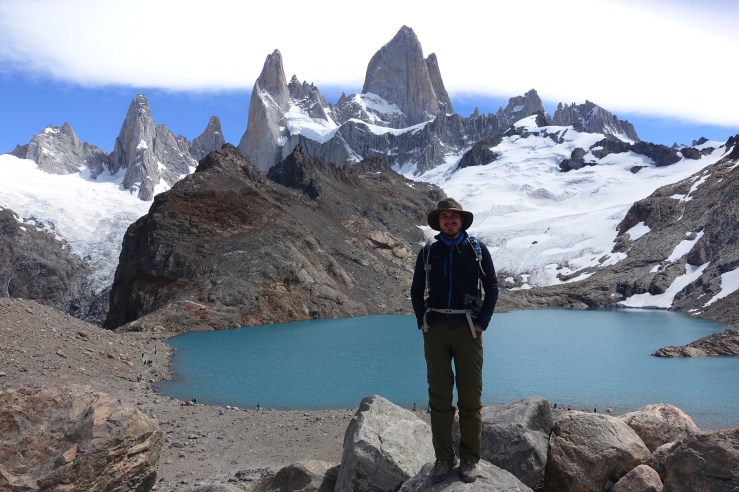 Me in front of the Cerro Fitz Roy, the glacier and the lake. This was the final point of the hike before we returned back to El Chaltén.