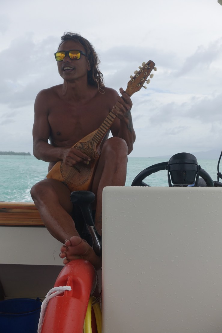 Our guide did not only feed the fish and informed us about the animals and the island, he also sang songs while he played the guitar. In the same time he was steering the boat with his feet. And yes, he was wearing something (even though it was very little).