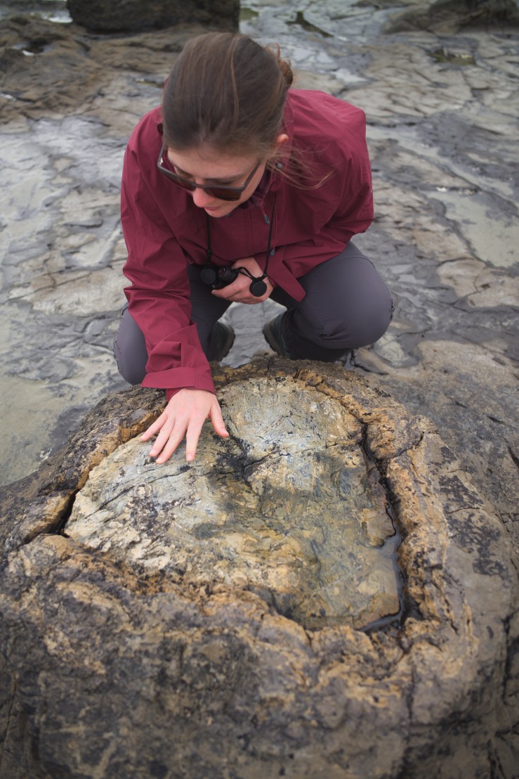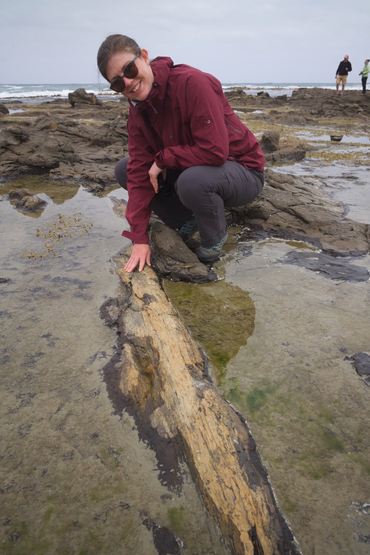 Christine checking how fossilised trees feel like.