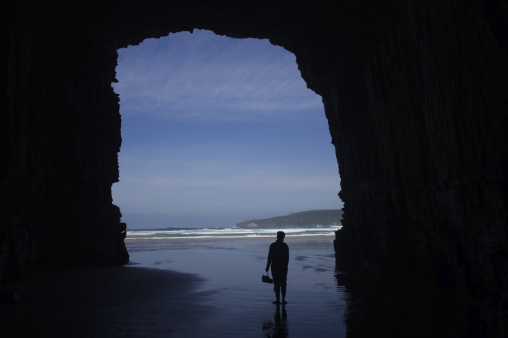 Christine standing in the entrance on one of the Cathedral Caves.