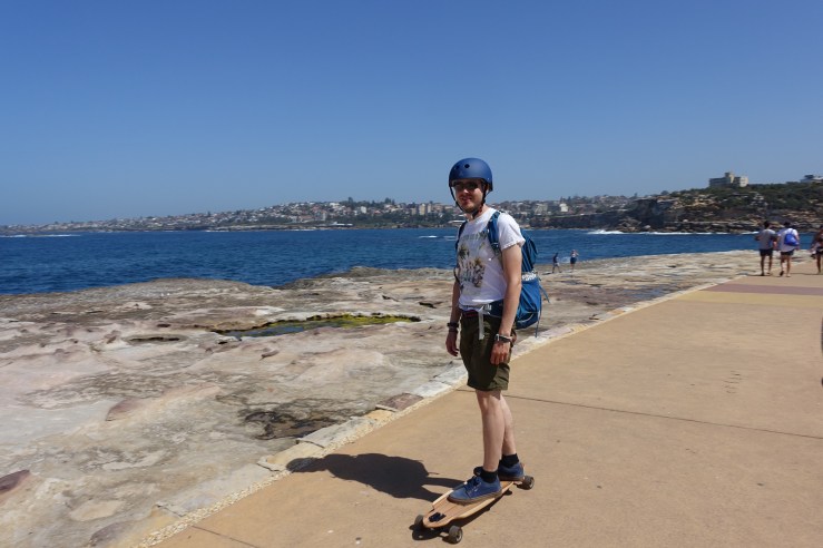 When we arrived at Bondi Beach, Yves dared to have a swim in the very wavy water and had great fun bathing in the waves. The beach was pretty crowed – from young to old – fashionable to unfashionable, half Sydney meets at Bondi Beach.