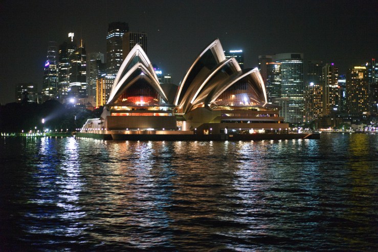 Afterwards we decided to take the ferry to Manly, had a walk along the famous beach and ate a light dinner. When we took the ferry back to the city centre it was already dark and the lights of the city were reflected in the water – a beautiful sight.