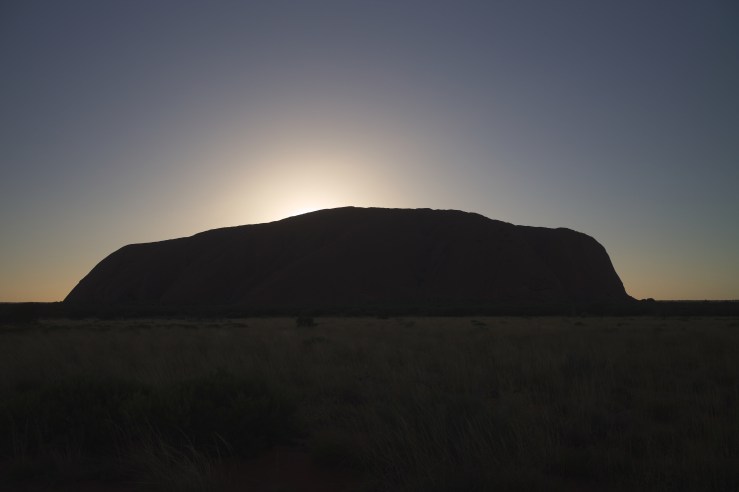 Uluru at sunrise. On the left side you can see Kata Tjuta in the back.
